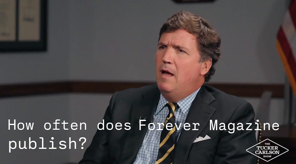 I’d like to start publishing excerpts from our sold-out print catalogue on this platform again, and maybe I’ll get around to it soon. A handful of those older issues will be available tonight in person.
